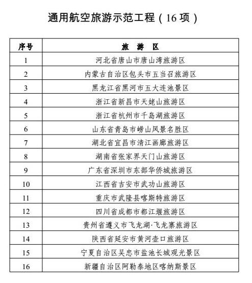 2、通用航空旅游示范工程(16 项)
