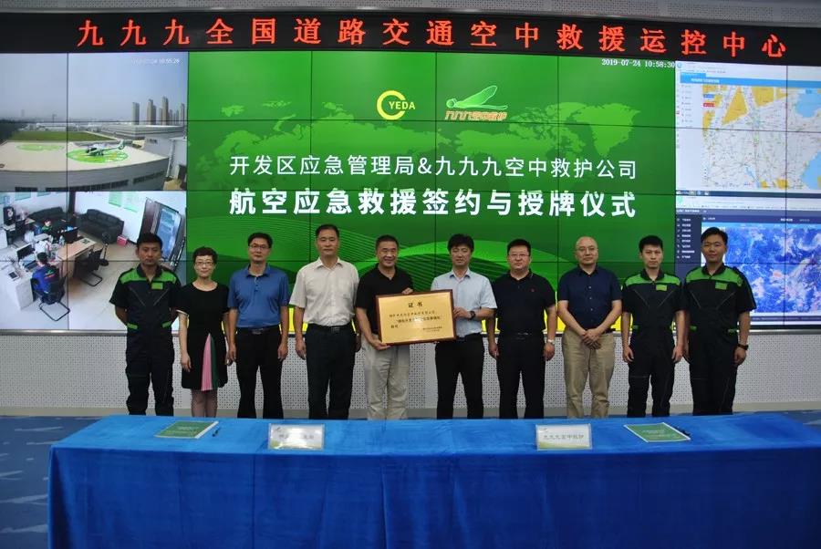 查看详情>>为进一步提升烟台市应对突发事件能力,全力保障人民群众生命和财产安全,按照烟台市委市政府领导批示指示精神,7月24日上午,烟台开发区应急管理局同九九九空中救护举办首支“航空救援队”签约授牌仪式,标志着烟台开发区应急救援协同机制率先在山东启动。九九九空中救护作为全国第一家拥有自己飞行医护团队的空中救护专业运营商,在航空紧急医学救助和应急救援方面有着丰富的经验,协议的签订,标志着覆盖烟台市行政区域、反应灵敏、快捷高效、“空地一体”的应急救援体系基本形成。