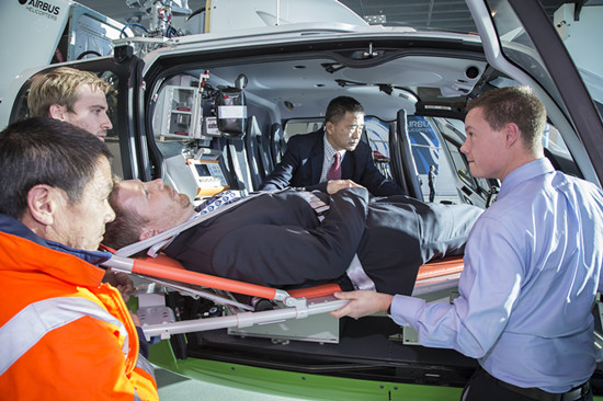 “直升机不单是简单的运输工具,机上配备了专业呼吸机、除颤仪、注射泵、氧气站等全套的医疗救援设备,相当于把小型的ICU搬到了天上。”九九九空中救护负责人介绍到,空中救护直升机采用的是空中客车直升机公司生产的H130直升机。